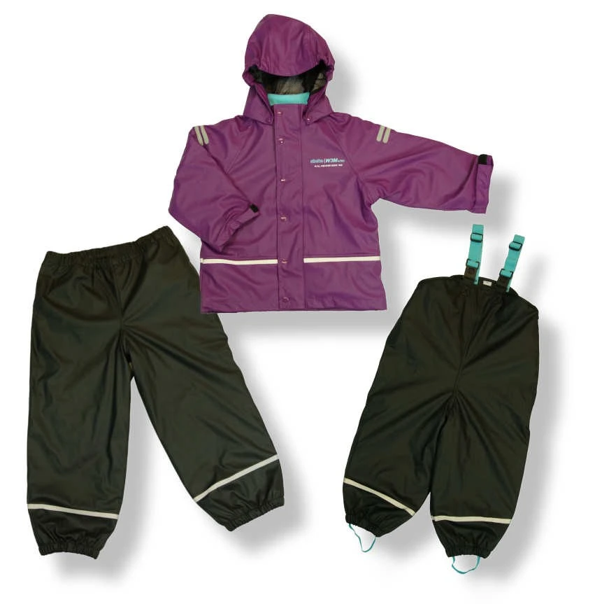 Gefüttertes Thermo-Regenset für Mädchen. Zweiteiler aus Matschhose + Regenjacke mit auszippbarem Innenfutter