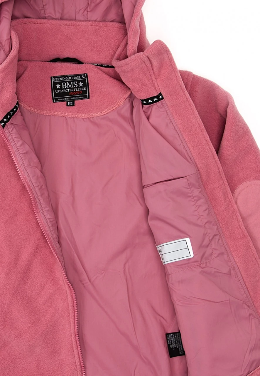 Kuschelweiche Fleecejacke für Kinder. Bequem und praktisch, mit Kapuze und leichtem Nylon Innenfutter . Ideal für Kinder die viel Draußen aktiv sind.
