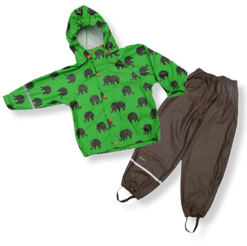 CeLaVi Mädchen Regenanzug 2 Teile grün mit braunen Elefanten