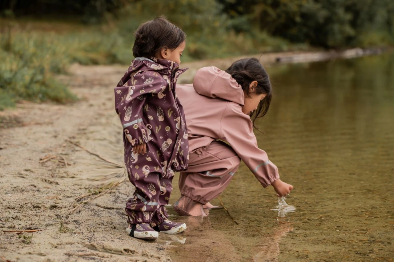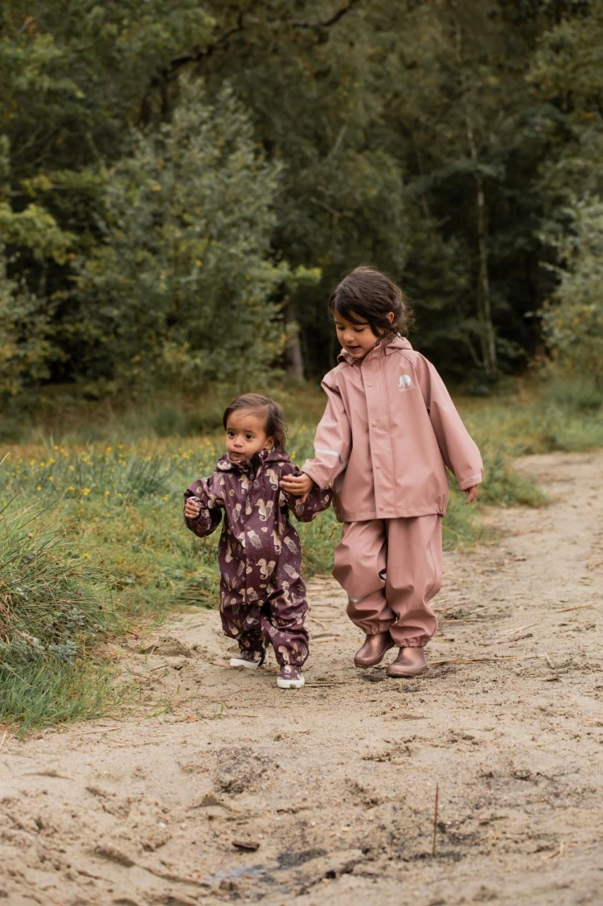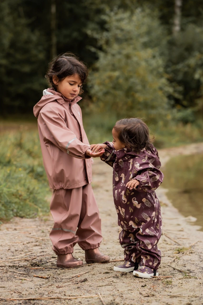 Der wasserdichte Celavi Regenanzug in bordeaux hat ein süßes Seepferdchen-Motiv. Durch den bequemen Schnitt ist der Anzug ganz einfach anzuziehen. Rein in den Matschoverall, und Raus in die Natur. Die gute Paßform sorgt dafür, daß die Kleinen sich nicht eingeengt fühlen und nichts zwickt oder drückt. Verschweißte Nähte und der abgedeckte Reißverschluss halten Regen und Matsch draußen. Der Regenanzug ist ungefüttert . Mit einem wärmenden Fleeceoverall darunter ist er auch im Winter ein zuverlässiger Schutz vor Nässe, Matsch und Kälte.