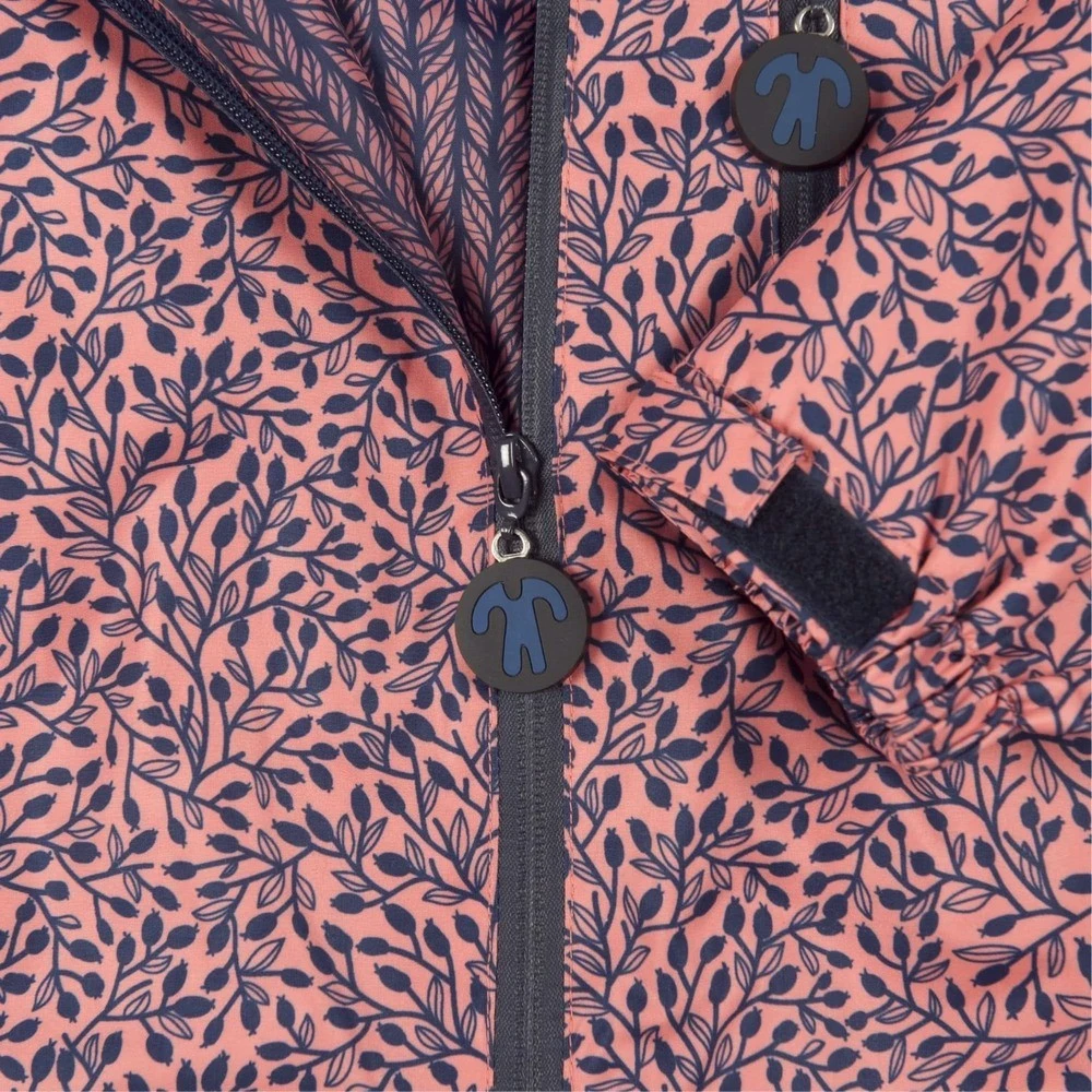 Praktischer wasserdichter Matschoverall von Ducksday. Das Modell PIP ist in einem rauchigen Rose einem hübschen blauen Blütenmuster. Der ideale Regenoverall zum Drüberziehen als Schmutz und Nässeschutz für den Spielplatz, Sandkasten, Kindergarten oder zum Fahrradfahren.