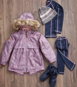 MINYMO Mädchen Schneeanzug Loganberry Lila Blumen Doppelzipper