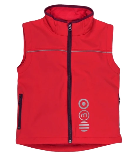 Atmungsaktive Kinder Softshellweste von Minymo . Egal ob an einem kühlen Sommerabend über ein Kurzarmshirt gezogen, im Herbst als Windstopper über dem Pulli, als Unterziehweste im kalten Winter – die Minymo Softshell Weste sorgt das ganze Jahr über für ein angenehmes Wäremegefühl am Rücken und im Nierenbereich.Das Stretch-Softshell Außenmaterial ist Wasser abweisend, winddicht, atmungsaktiv und wunderbar weich und bequem.