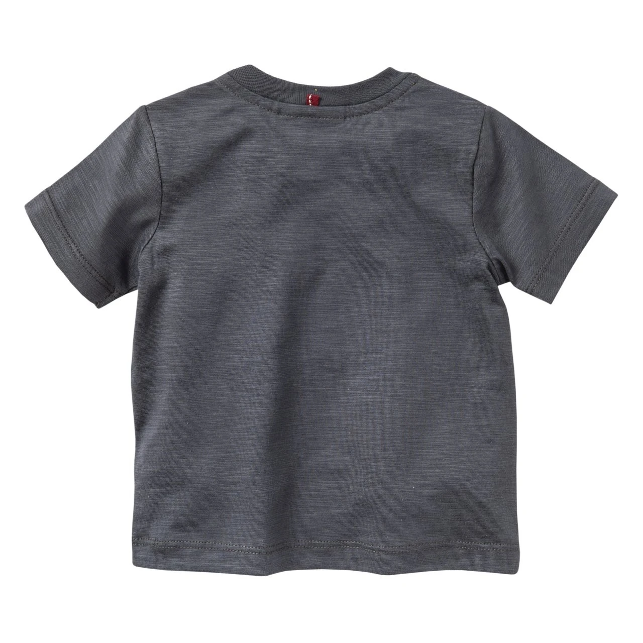 Kurzarmshirt schiefergrau mit Druck „Little Explorer“ aus Bio-Baumwolle. Cooler dunkler Look mit großem Print „Little Explorer“. Die praktischen nickelfreien Druckknöpfe an der Schulter erleichtern das An- und Ausziehen des Shirts.Das Material ist 100% Baumwolle , kontrolliert biologischer Anbau, „organic“ gem. GOTS lizenziert durch Ecocert Greenlife | Liz. Nr. 151811.