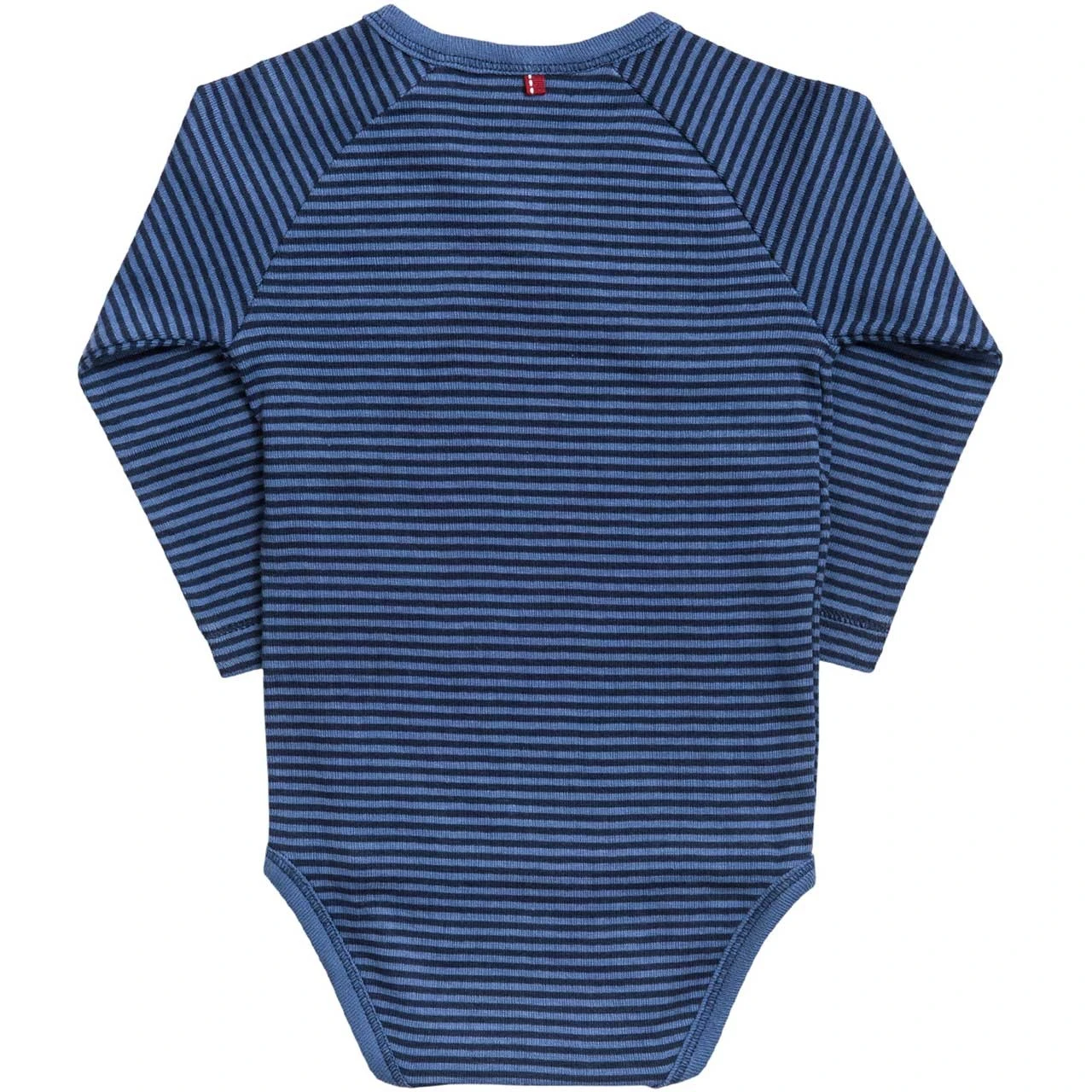 Baby Langarm Wickelbody jeansblau gestreift aus Bio-Baumwolle