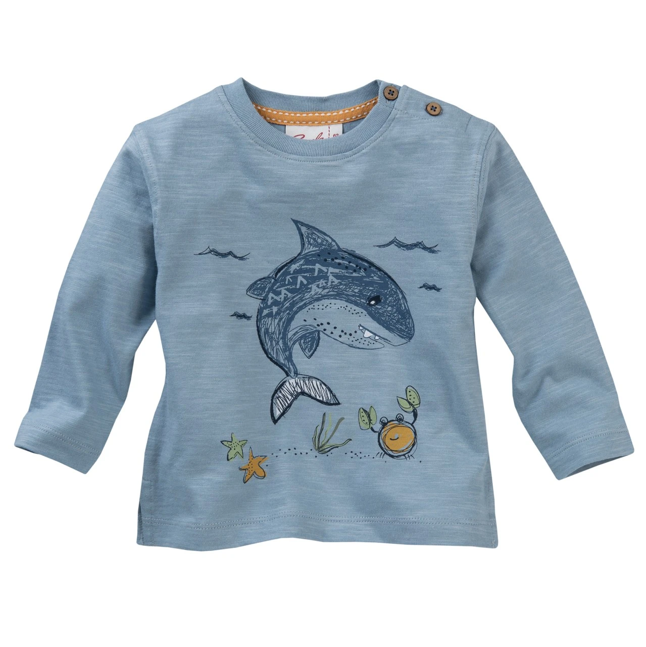 People Wear Organic – Langarmshirt blaugrau mit Druck „Hai“ aus Bio-Baumwolle