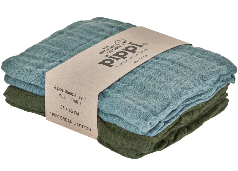 pippi® Organic Baby Stoffwindeln petrol/oliv Mix Spucktücher Mullwindeln 4er Pack