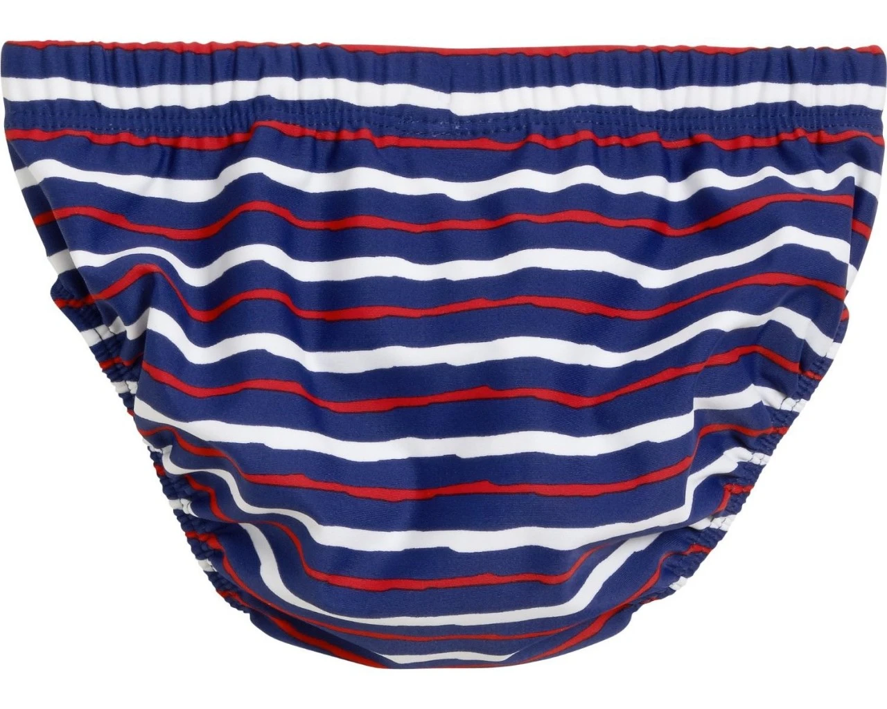 Coole Baby-Schwimmwindel mit Streifen und einem kleinen Helmtaucher. Die bequeme Aquawindel und ist genau das richtige Badeoutfit für kleine Wasserratten. Ideale Baby-Badehose fürs Babyschwimmen , beim Spielen im Planschbecken und für den Strandurlaub – mit der praktischen Baby Schwimmwindel ist man vor unangenehmen Überraschungen immer bestens geschützt . Feste Bestandteile werden zurück gehalten, und gelangen nicht ins Schwimmbecken oder an den Sandstrand. Im Falle eines Falles ist die Badewindel schnell gewechselt und gesäubert.